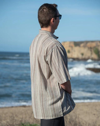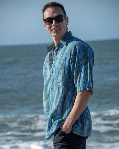 This Button Down Kurta Shirt is made from soft, hand-woven cotton. It features short sleeves and a breast pocket, making for a simple, easy look!