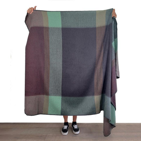 The Twilight Alpaca Throw captures the understated beauty of dusk with a serene blend of soft gray, stone, plum, and hints of mint.