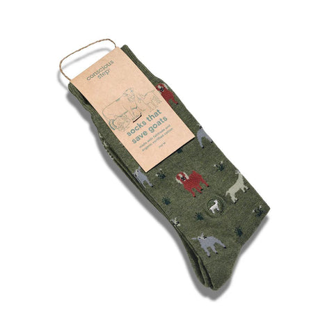 These olive green goat socks might be our greatest of all time. Featuring curious, grazing goats, it’s a style that others in your sock drawer might be hard to bleat.